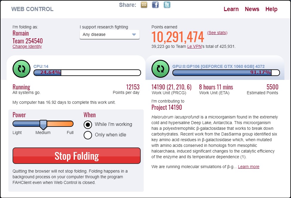 As nobody in Le VPN can sing John Lennon’s ‘Imagine’ a cappella, we have decided to join the fight where we can help. We are donating a part of our processing power to the global effort and have started our own Folding@Home team.